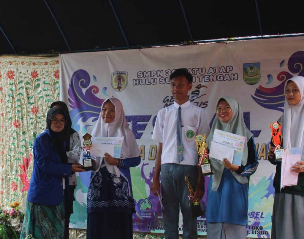 Aulia Altafunnisa kelas 8c Raih Juara 1 Stand Up Comedy Bahasa Banjar pada kegiatan GEMA MERATUS festival bulan bahasa dan budaya banajar yang diselenggarakan oleh SMPN 30 Satap HST.