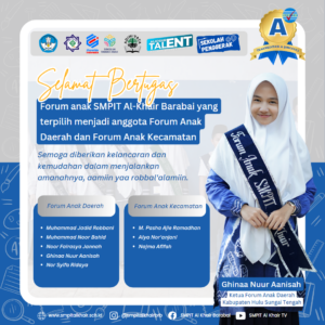 Ghinna Nuur Aanisah terpilih sebagai ketua Forum Anak Daerah Kabupaten Hulu Sungai Tengah, bersama dengan tujuh siswa lainnya yang terbagi pada keanggotaan Forum Anak Daerah Kabupaten Hulu Sungai Tengah dan Forum Anak Kecamatan.
