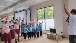 kedatangan kami disambut dengan hangat oleh Dinas Perpustakaan, semakin seru Siswa/i diajak Pa Ali bernyanyi dan juga tanya jawab.”