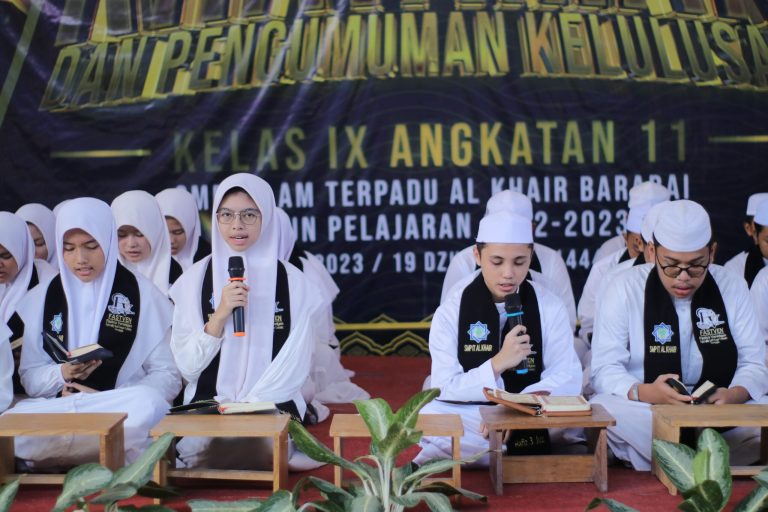 Barabai, 8 Juni 2023 – Suasana kegembiraan dan haru menyelimuti lingkungan SMPIT Al Khair Barabai, ketika siswa-siswi kelas 9 merayakan acara Khataman Al-Qur’an dan Pengumuman